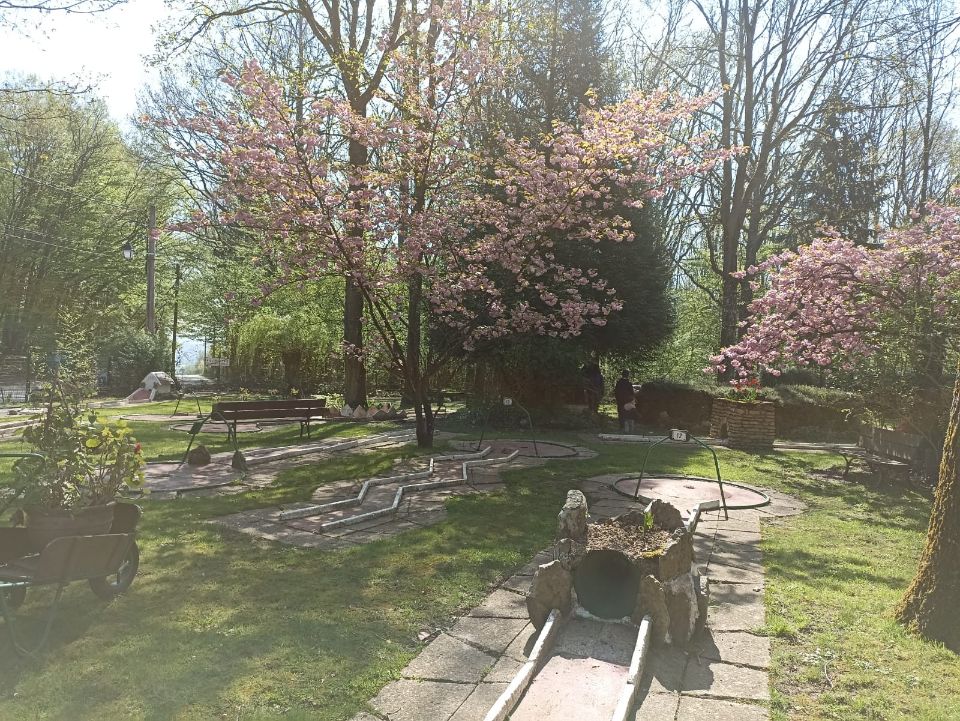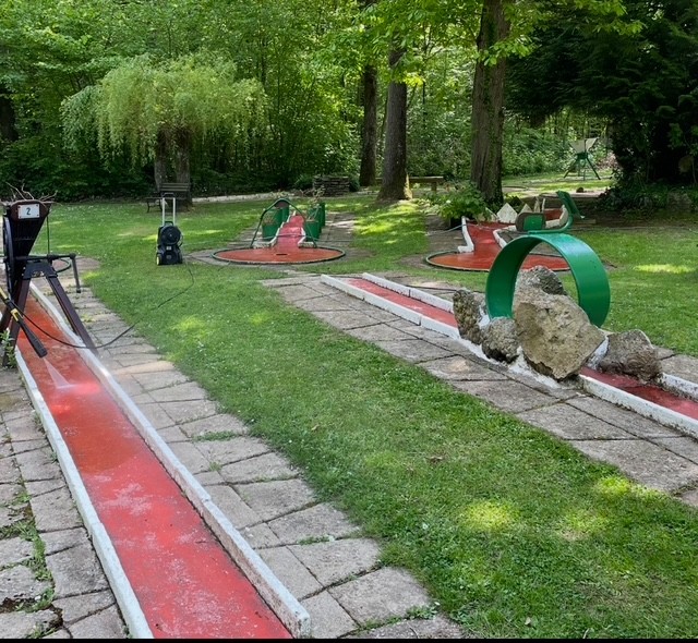 Situé dans un parc arboré de 1600m2, entièrement clos, le mini-golf profite d’un environnement calme et verdoyant.